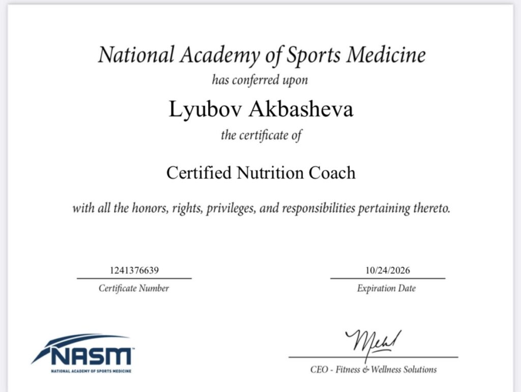 - Certified Personal Trainer – Helping you integrate fitness with nutritional support to maximize results.