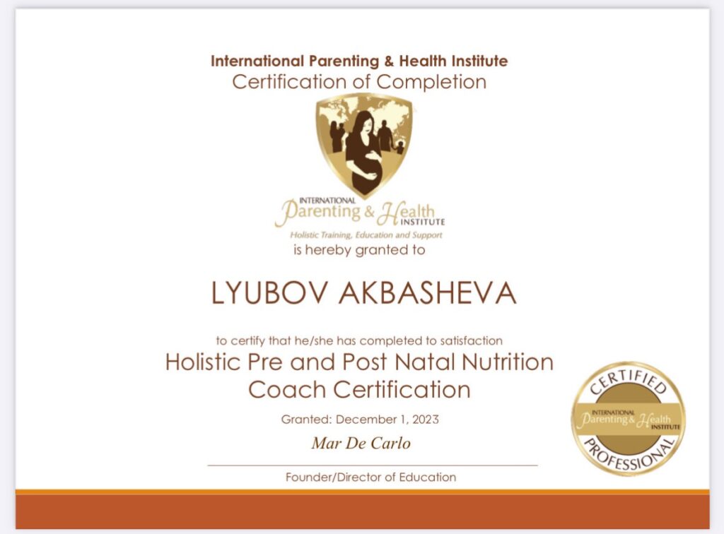 - Pre/Postnatal Nutrition Specialist – Guiding moms-to-be and new mothers through one of life’s most beautiful and demanding transitions.